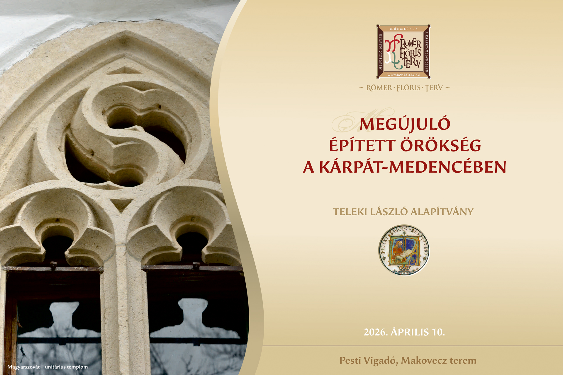 A Teleki László Alapítvány 2026. április 10-én a Pesti Vigadóban (Makovecz terem), Rómer Flóris Terv ‑ Megújuló magyar műemlékek a Kárpát-medencében címmel műemlékes konferenciát